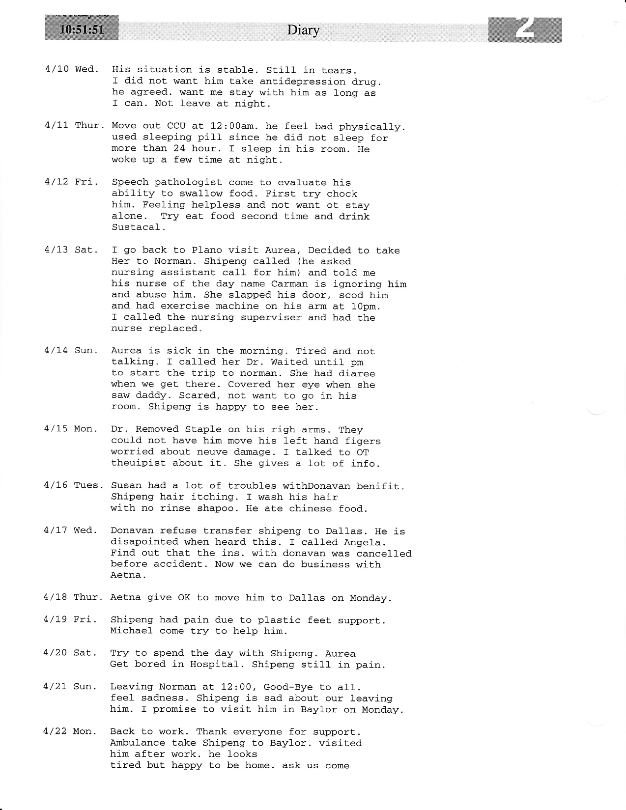 Diary on Shipeng’s 1996 Norman Oklahoma Accident